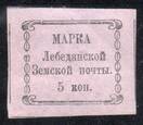 Лебедянский уезд 5 коп. чёрная на фиолетовой бумаге. 1 марка.