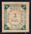 Бежецкий Уезд. 3 коп. Чёрная на Зеленовато-Голубой Бумаге. 1 марка.