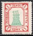 Лохвицкий уезд, 1 коп. Изумрудно-зелёная и карминово-красная. Крепость. 1 марка.