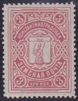 Константиноградский уезд, 3 коп. Карминово-розовая. 1 марка.