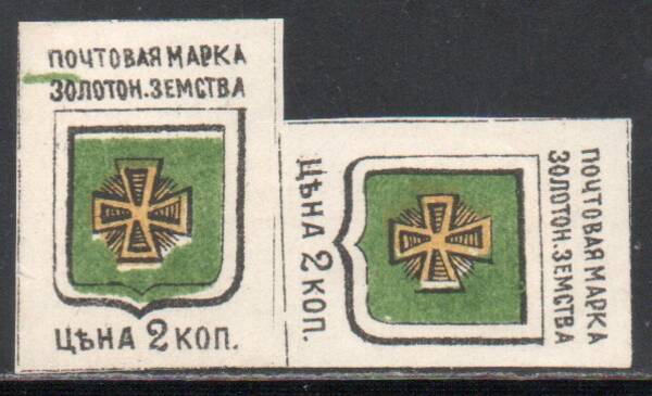 Золотоношский уезд, 2 коп. Чёрная, светло-зелёная и желтая. Куше ( пара марок ).