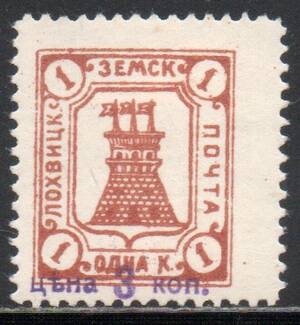 Временный выпуск. Марка предыдущего выпуска с фиолетовой надпечаткой "Цена 3 коп.". С зубцами. Свой клей, лёгкий след наклейки.