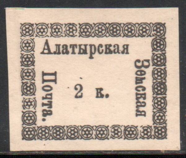 Алатырский уезд, 2 коп. чёрная. Новодел. 1 марка.