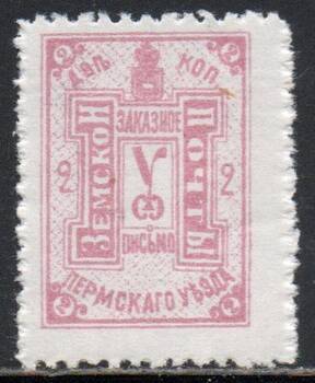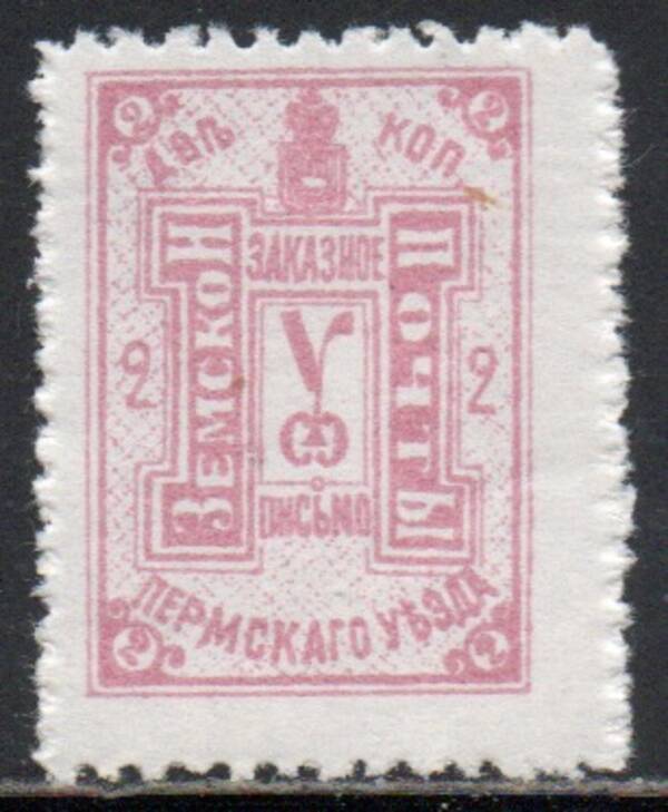 Пермский уезд, 2 коп. бледно-розовая. 1 марка.