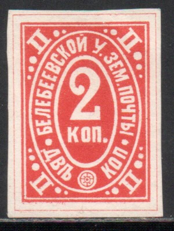 Белебеевский уезд, 2 коп. Светло-красная. 1 марка.
