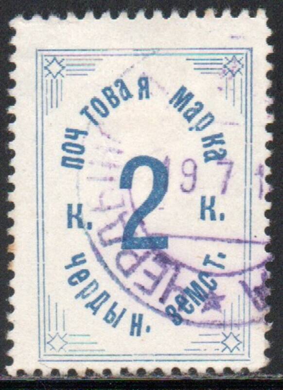 Погашена фиолетовым календарным земским штемпелем: "ЧЕРДЫНСКАЯ ЗЕМСК. ПОЧТА 19.07.1913".