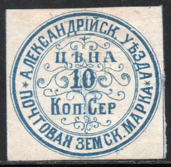 Александрийский уезд 10 коп. сер. Синяя. 1 марка.