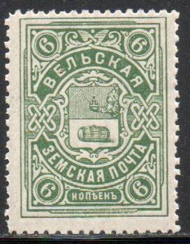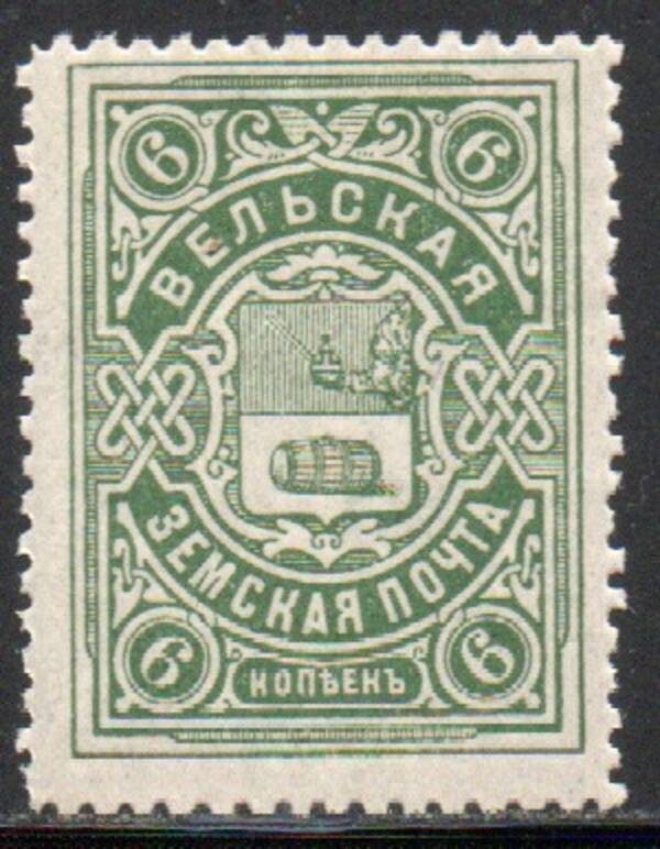 Вельский уезд 6 коп. Серо-зелёная. 1 марка.