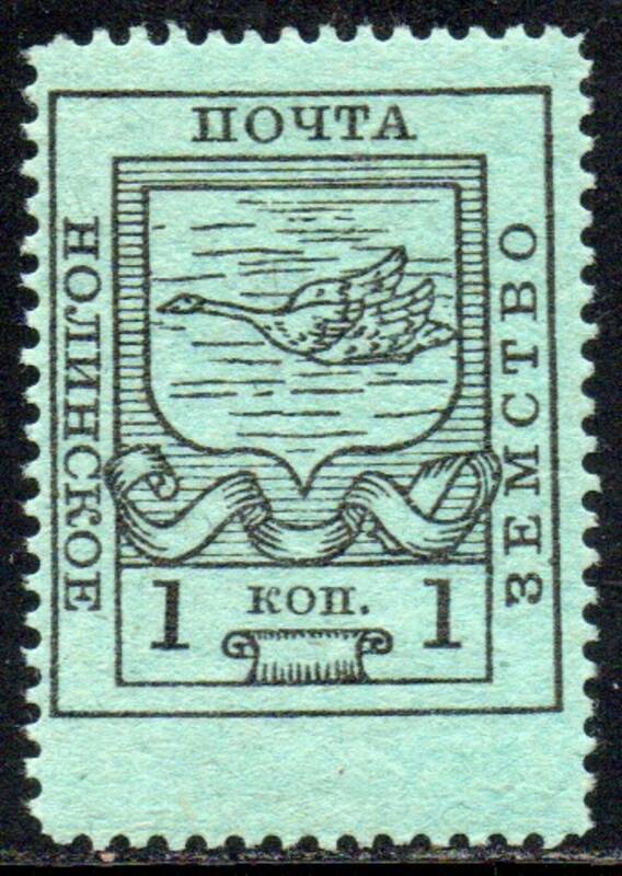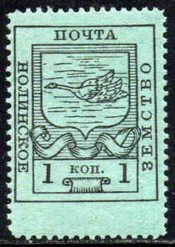Нолинский уезд 1 коп. чёрная на зелёной бумаге. 1 марка.