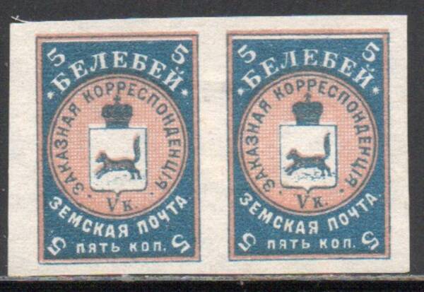 Белебеевский уезд 5 коп. изумрудно-зеленая и голубая. Пара марок.