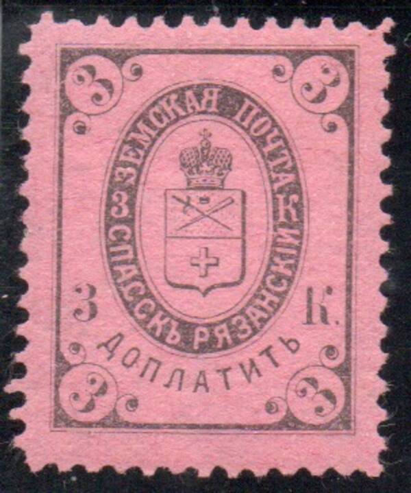 Спасский уезд 3 коп. чёрная на серовато-розовой бумаге. 1 марка.