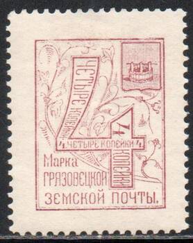 Грязовецкий уезд 4 коп. красновато-лиловая. 1 марка.