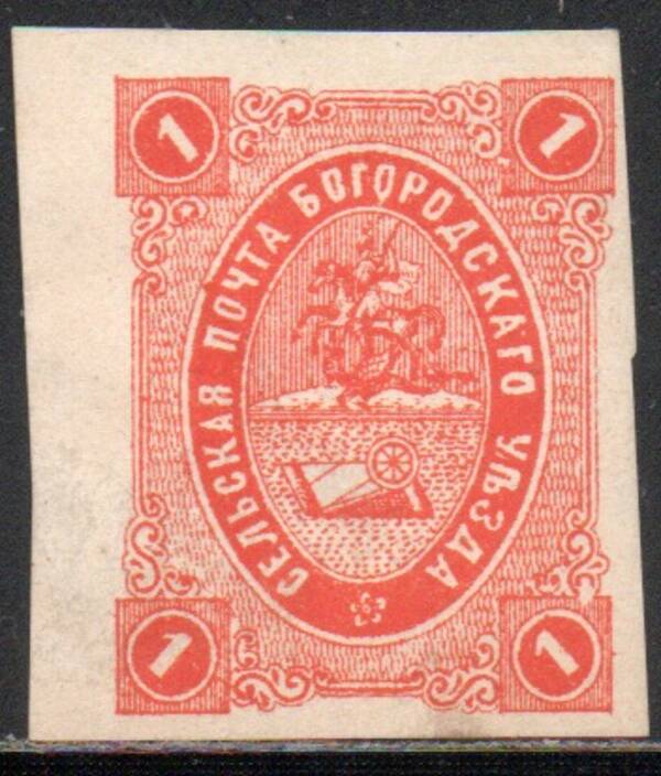 Богородский уезд 1 коп. красно-оранжевая. 1 марка.