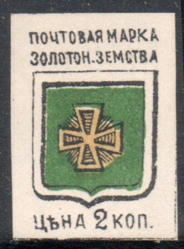 Золотоношский уезд 2 коп. Чёрная, тёмно-зелёная и желтая. 1 марка.