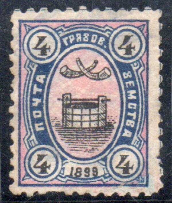 Грязовецкий уезд, 4 коп. Чёрная, розовая и синяя. 1 марка.