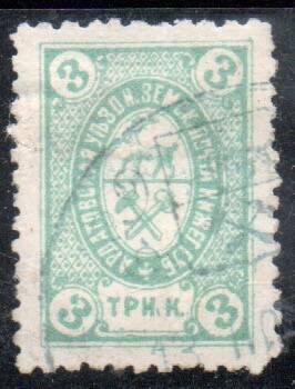 Литография на белой бумаге. Перф. Лин. 11 1/2. Погашена уездным штемпелем.