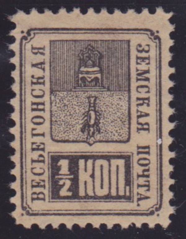 Весьегонский уезд, 1/2 коп. чёрная на серовато-кремовой бумаге. 1 марка