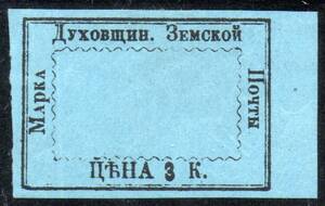 Духовщинский уезд, 3 коп. Чёрная, Бумага Светло-Синяя, 1 марка.