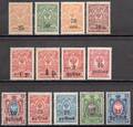 Кубань ( Екатеринодар ). Надпечатки: -25 коп. - 25 рублей на марках Российской Империи. 13 марок.