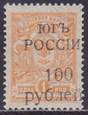 Чёрная надпечатка 100 р. на 1 коп. Большой и Малый "0" в надпечатке. 1 марка.