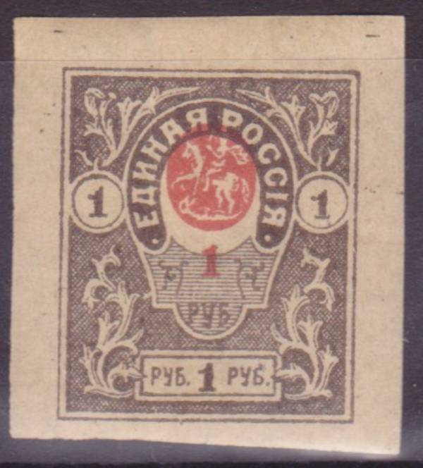 Единая Россия: 1 рубль Коричневая / красная. Сдвиг центра. 1 марка.