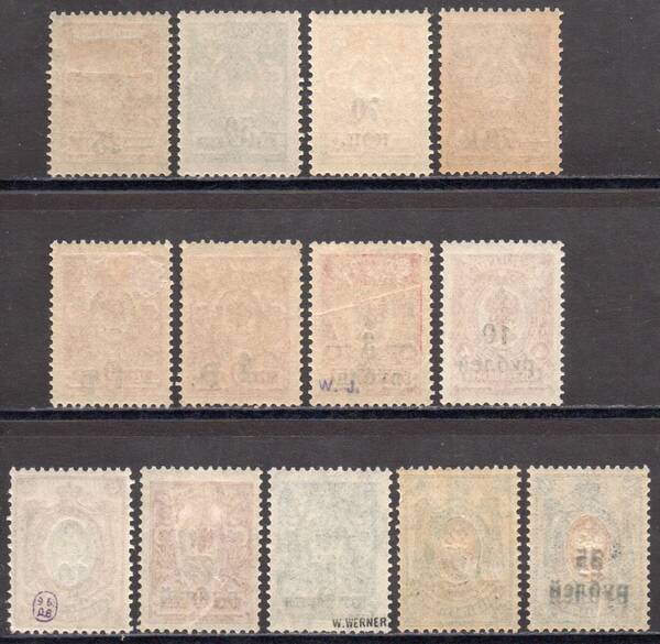 Типографская надпечатка на марках Российской Империи. Свой клей, следы наклеек.