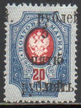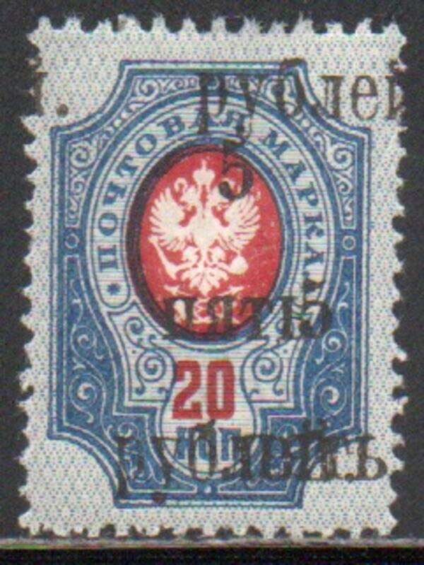 Двойная надпечатка 5руб/20 коп. Двойная надпечатка со сдвигом. 1 марка.