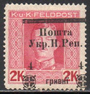 Чёрная надпечатка на марке Австро-Венгрии. С зубцами. Свой клей. Заверки.