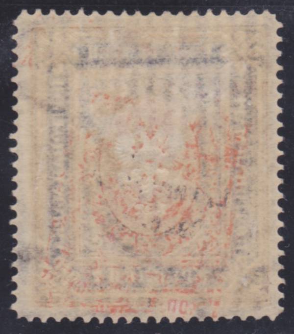 Почта "Русской Армии" (Генерал Врангель) 1920 год. Красная Типографская Надпечатка 20000 рублей на марке 7 руб. Вертикальное Верже 1902 года. Лёгкий след наклейки. На оборотной стороне абкляч надпечатки. |