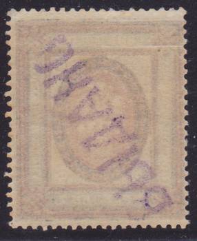 Надпечатка ручным фиолетовый штемпелем " ВЫДАНО " снизу-вверх на марке выпуска РСФСР 1919 года 7 рублей. Свой клей.