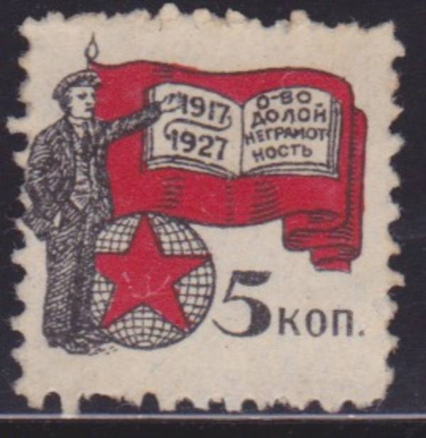 5 коп. Общество Долой Неграмотность 1917-1927. 1 марка.