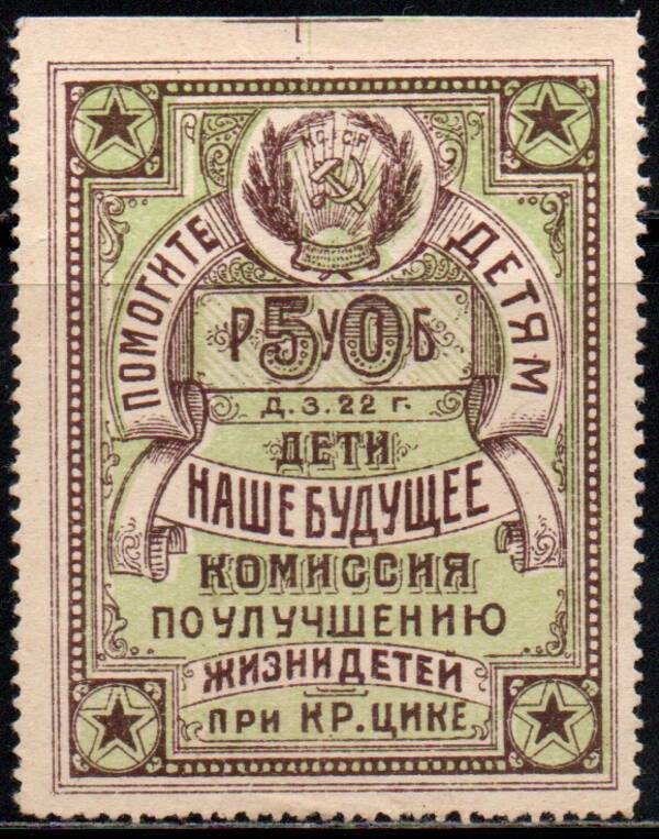 ПОМОГИТЕ ДЕТЯМ 50 РУБ. КОМИССИЯ ПО УЛУЧШЕНИЮ ЖИЗНИ ДЕТЕЙ. 1 марка.