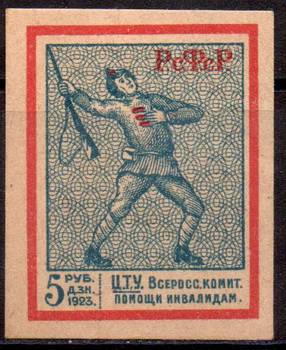 5 руб. Раненый Красноармеец. Ц.Т.У. Всеросс. комит. помощи инвалидам. 1 марка.