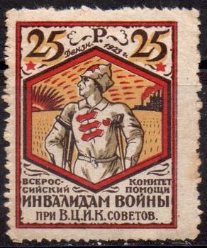 25 руб. Красноармеец. Всеросс. комит. помощи инвалидам при В.Ц.И.К. Советов. 1 марка.