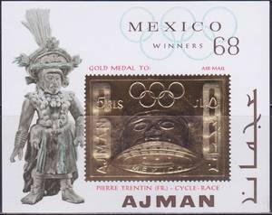 Летние Олимпийские Игры Мехико ( III ). Надпечатка. Почтовый Блок.