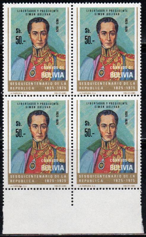 50 Р. Первый Президент Боливии Симон Боливар ( 1825-1826 ). Квартблок.