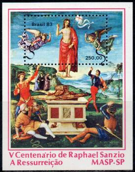 500 лет со дня рождения Рафаэля Санти ( 1483-1520 ). "Христос Вседержитель". Почтовый Блок.