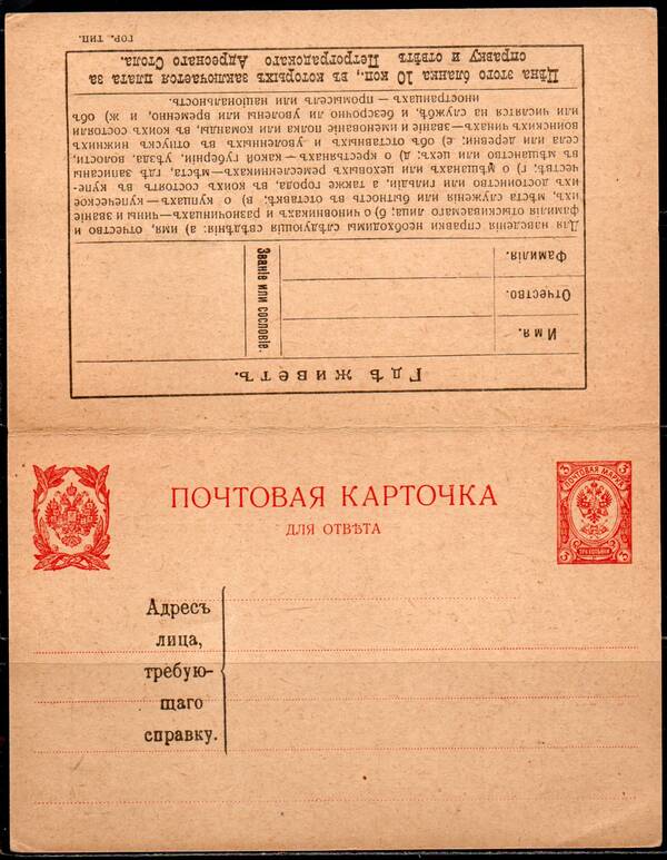 Почтовая Карточка с Оплаченным ответом