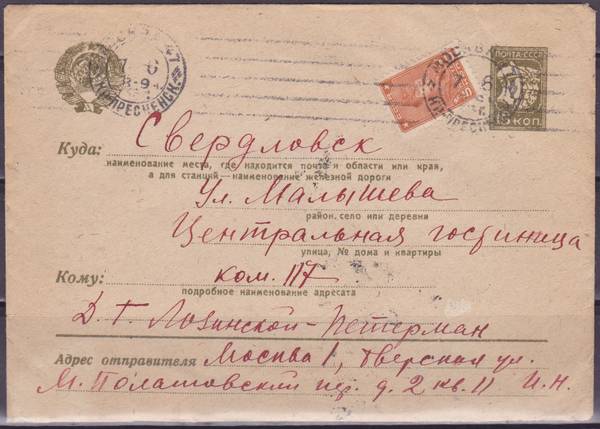 Почтовый штемпель: "Москва 07.06.33 22 * Кр.-Пресня *".
