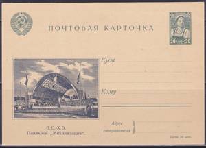 Рекламная Почтовая Карточка: В.С.-Х.В. Павильон " Механизация ".