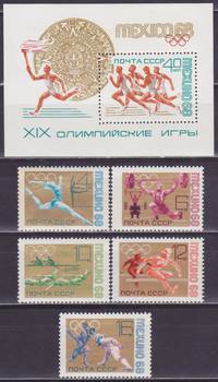 XIX летние Олимпийские игры (Мехико, Мексика). Серия 5 марок + 1 Блок.