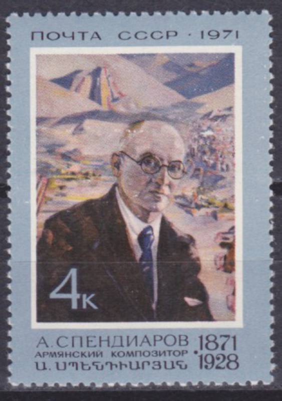 100 лет со дня рождения А.А.Спендиарова (1871-1928). Работа художника М.Сарьяна. 1 марка.