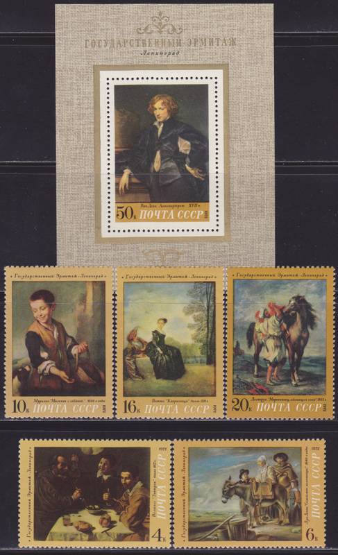 Зарубежная живопись в музеях СССР. Серия 5 марок + 1 Блок.