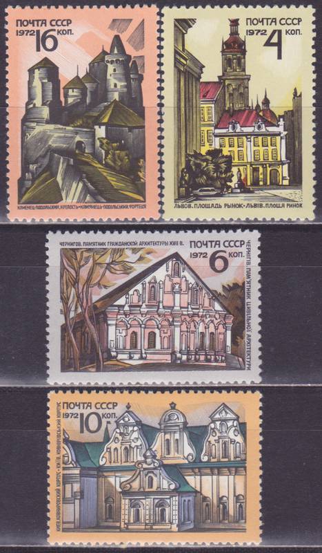 Историко-архитектурные памятники Украины. Серия 4 марки.