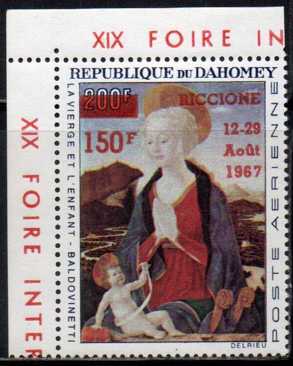 Живопись. Красная надпечатка "150 F. Ярмарка Почтовых марок Риччоне". Абкляч. 1 марка.