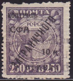 Типографская надпечатка " ... ЗАГРАНИЧНЫЙ ОБМЕН 10 к. " на 250 руб. 1 марка.
