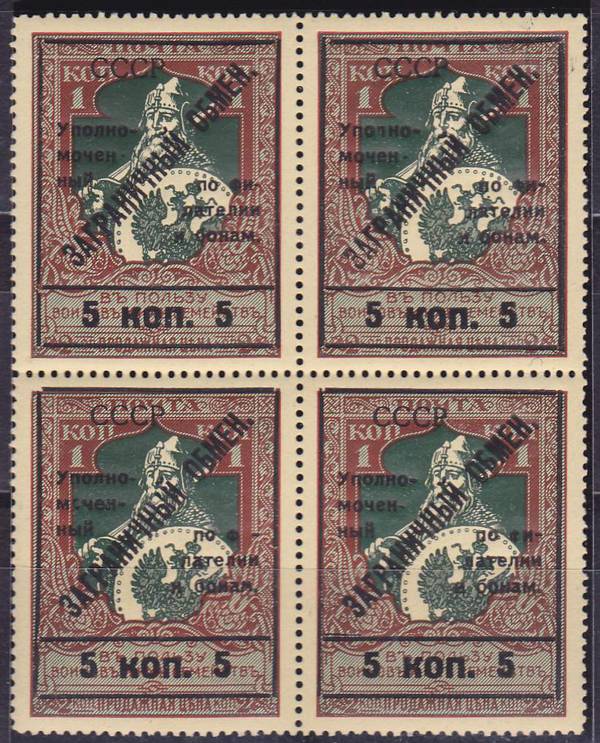 Чёрная типографская надпечатка " ... ЗАГРАНИЧНЫЙ ОБМЕН ... " на благотворителной марке России № 96. Свой клей.