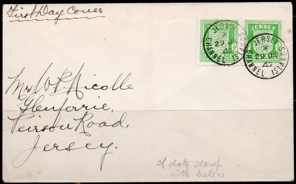 Простое письмо Джерси. Франкировано 2-мя марками 1/2 пен.