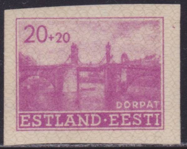 20 + 20 (к) Фиолетовая. Вид города Тарту (Dorpat). Без зубцов. 1 марка.