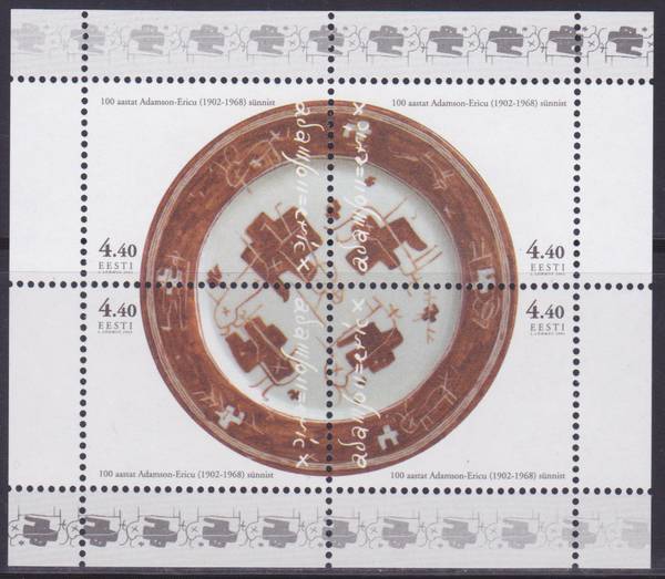 100 лет со дня рождения Адамсона-Эрика. 1 Блок.